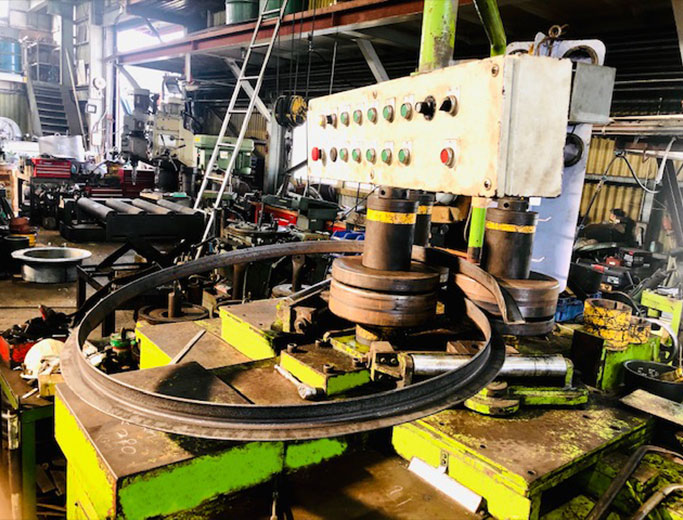 角パイプ、アングル、丸パイプ、平鉄鋼、各種パイプを360度自由に角度曲げが可能。